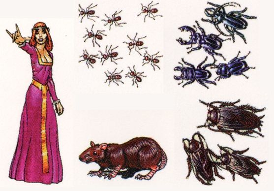 - Un gran número de bichos se ha subido a uno de los toldos, que cederá cuando haya alguien debajo, derramando sobre el infeliz una auténtica lluvia de insectos. Cuenta como un «ataque» normal contra un héroe, según hemos visto más arriba, pero da mucho más juego si le pasa a un PNJ. Por supuesto, el pobre saldrá chillando, retorciéndose e intentando quitarse a manotazos todos los bichos que corren por su cuerpo y se le han colado por la ropa.